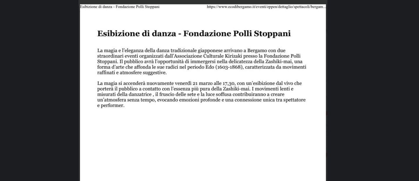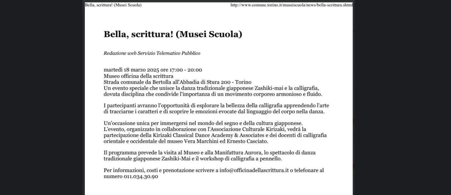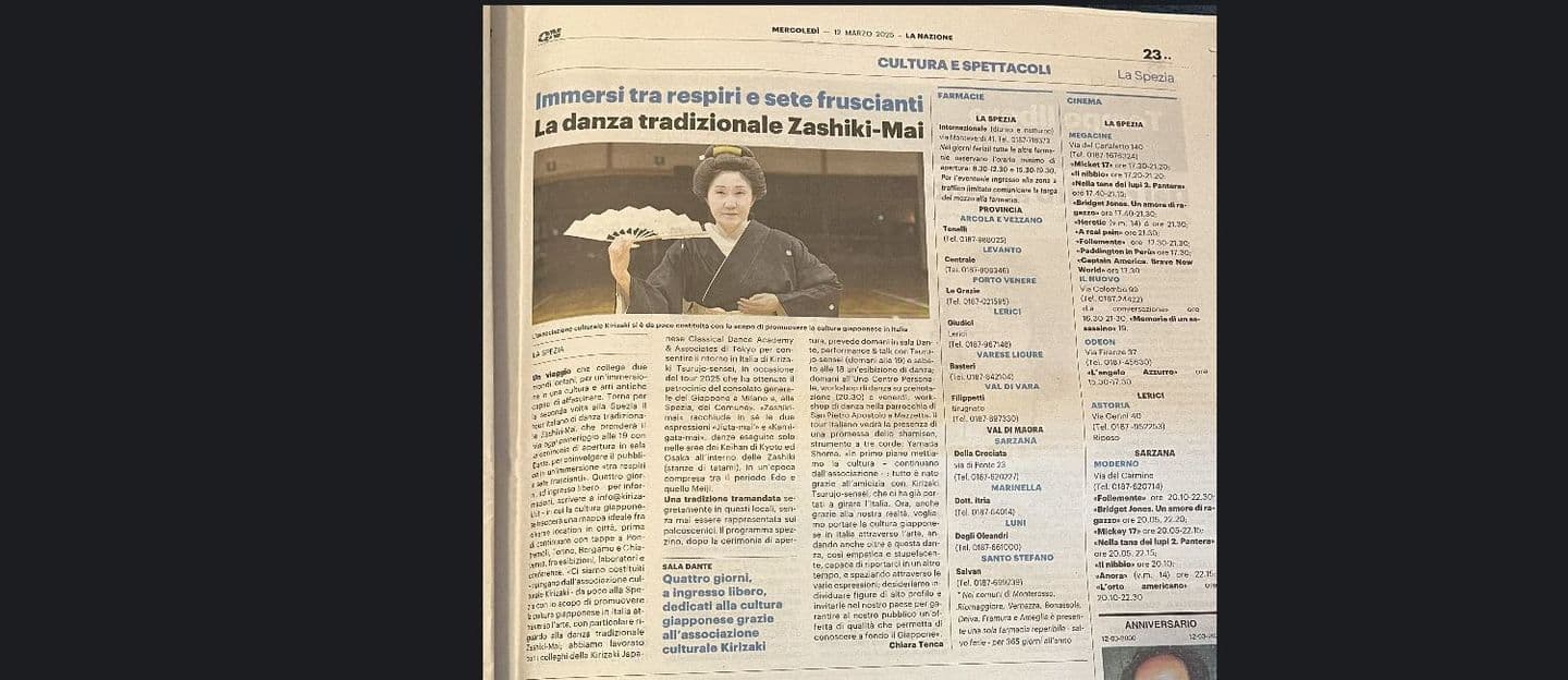 イタリアで発足したAssociazione Culturale Kirizaki(キリザキ文化協会)が今回より全面的にツアーを企画運営してくれるようになりました。座敷舞と日本文化の紹介のために非常に熱心に取り組んでくれています。よろしければ彼等のホームページにも遊びにいらしてください。Associazione Cultrale Kirizaki