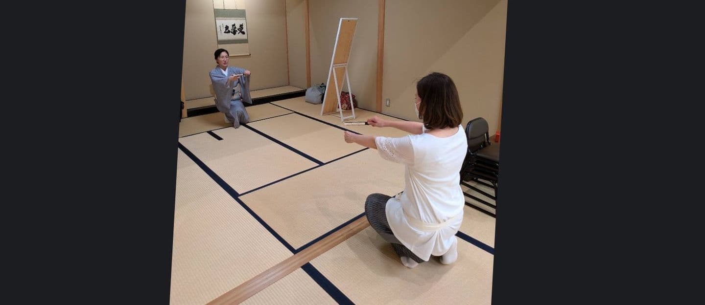 日本橋三越前のコレド室町にある「橋楽亭」にて7年ぶりに体験教室を実施致しました。今回は「浮舟」を舞いながら地唄舞の基礎を学ぶ内容です。